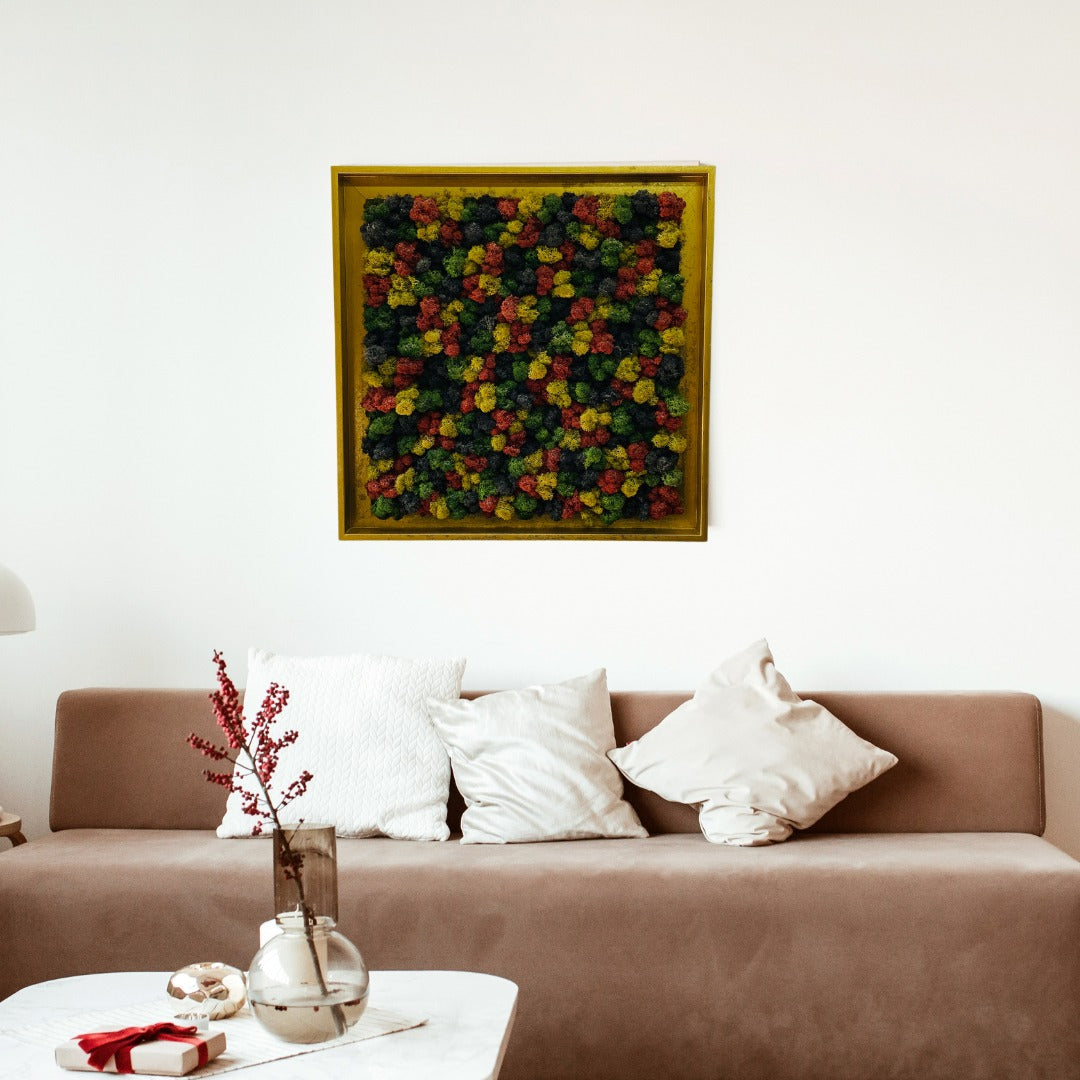 Tablou decorativ cu mușchi și flori stabilizate– „Armonie Naturală”